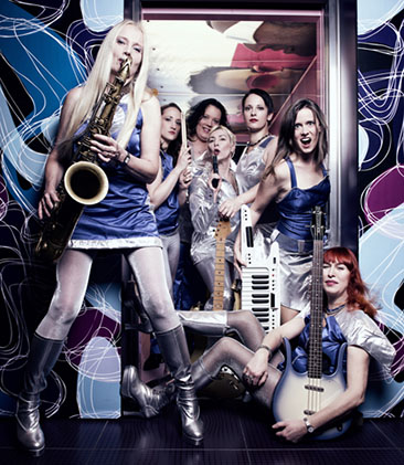 Frauen Power Band. Seit über 30 Jahren begeistern sie live und voller Kraft ihr Publikum voller Regenbogen-Glitzer. LIVE Music aus der diversen Welt. Pop Hits, Discomooves-, Rock, legendären Soulklassikern und aktuelle Hits.