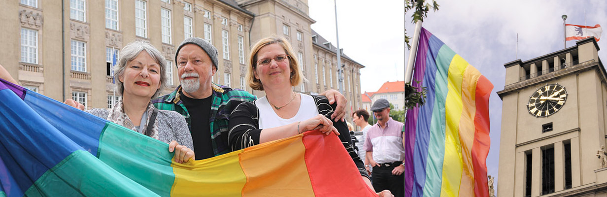 Am Donnerstag, dem 17. Juli um 14 Uhr wird der Bezirksbürgermeister von Tempelhof-Schöneberg Jörn Oltmann gemeinsam mit der Schirmfrau des Stadtfestes Elisabeth Ziemer und Gerhard Hoffmann als Sprecher des Regenbogenfonds e.V. die Regenbogenflaggen hissen.